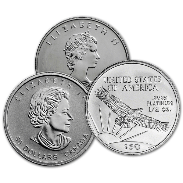 Discover an incredible deal on 1/2 oz Platinum Coins here at FMR Gold! Take advantage of  the opportunity to acquire these coins at remarkable prices! Great way to buy platinum close to the spot price. Each coin, may show some signs of wear, guarantees a minimum weight of 1/2 Troy Oz of 0.9995 Platinum!