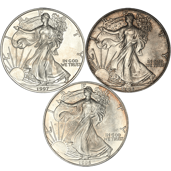 The American Silver Eagle coins made their debut in 1986, following the enactment of the Liberty Coin Act of 1985 by the US Congress. All Silver Eagle coins are struck with silver sourced from within the United States. Initially, silver for production was drawn from the Defense National Stockpile, with Congress extending authorization in 2002 for the Treasury Department and US Mint to procure silver from the open market. Featuring .999 fine silver, Silver Eagle coins carry a face value of $1.
