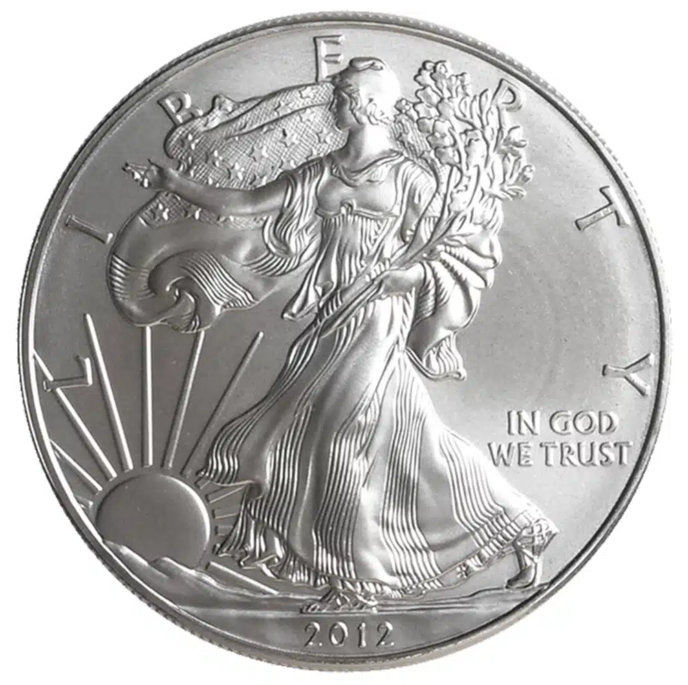 - Obverse features the iconic Walking Liberty design, adorned with ‘LIBERTY’ atop, ‘IN GOD WE TRUST’ to the right, and ‘2012.’ below.