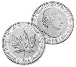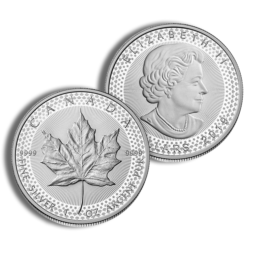 2019 Canadian Silver Maple Leaf – Modified Proof finish, 1 oz .9999 fine silver, struck at the Royal Canadian Mint. Includes the signature radial line security design and micro-engraved maple leaf privy mark.