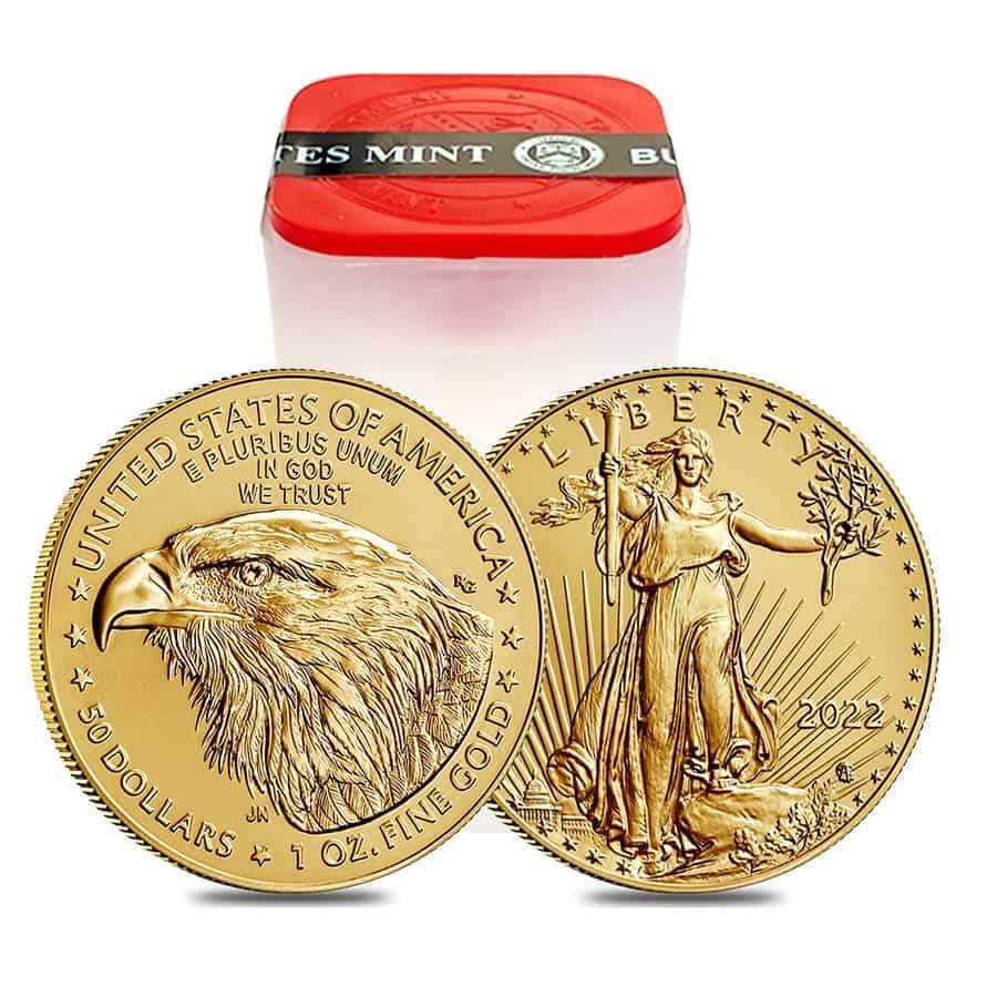 Act now to add the design in this popular series to your collection today. Coin Facts: Contains 1 oz of fine Gold. Multiples of 20 are packaged in U.S. Mint tubes; all other Gold Eagle coins will be in protective packaging. Packaged U.S. Mint tubes come in Monster Boxes of 500 when ordering in bulk.