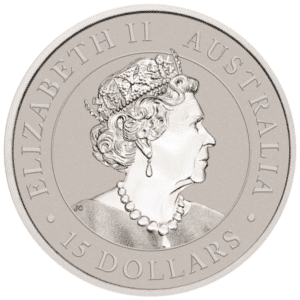 The obverse side of the coin features the portrait of Her Majesty Queen Elizabeth II, the current monarch of Great Britain, along with the words “ELIZABETH II”, “AUSTRALIA”, and the coin’s face value of $15 AUD.