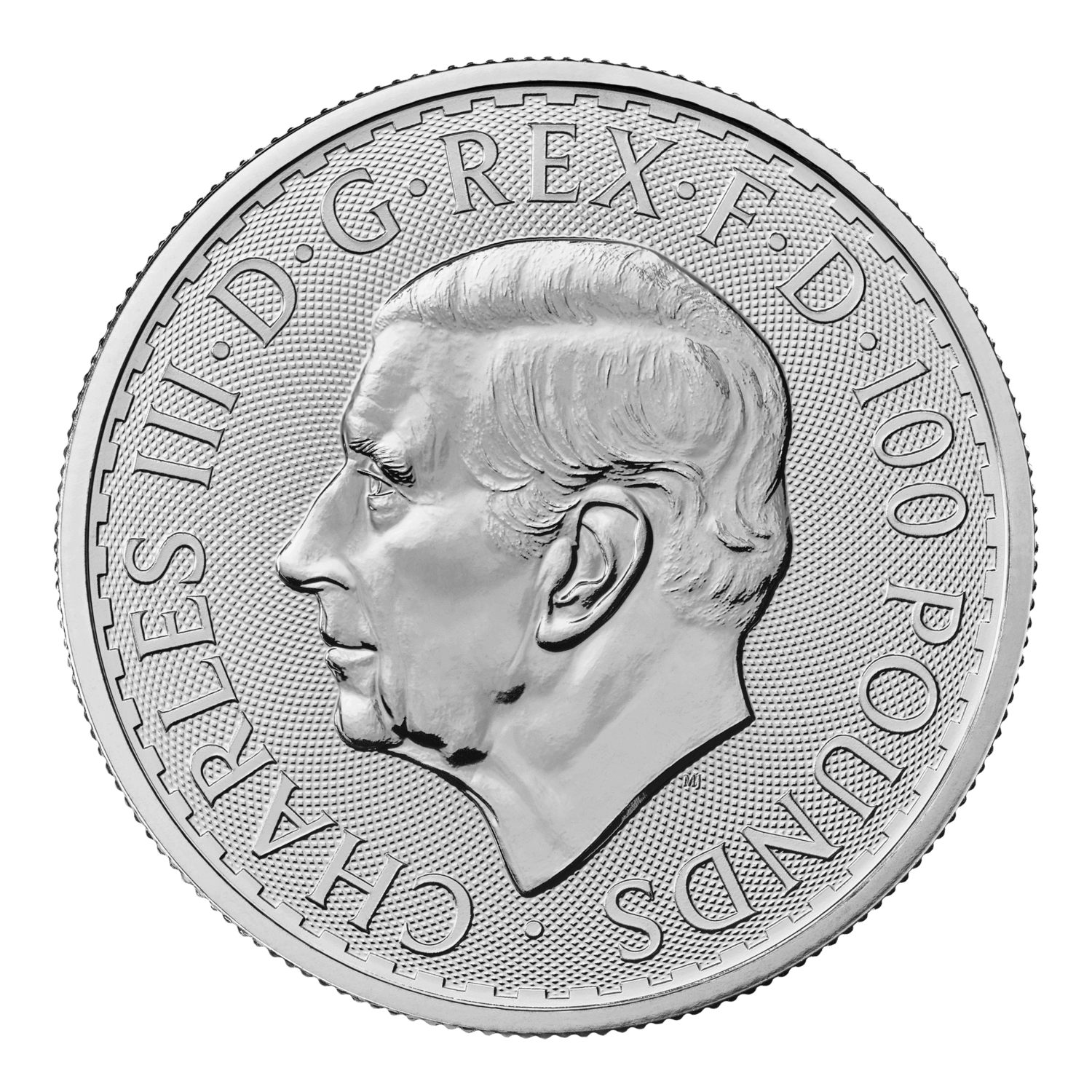 – Obverse: Showcases the effigy of His Majesty King Charles III, accompanied by a face value of 100 pounds. The design is accentuated by a captivating guillochĂ© background pattern.