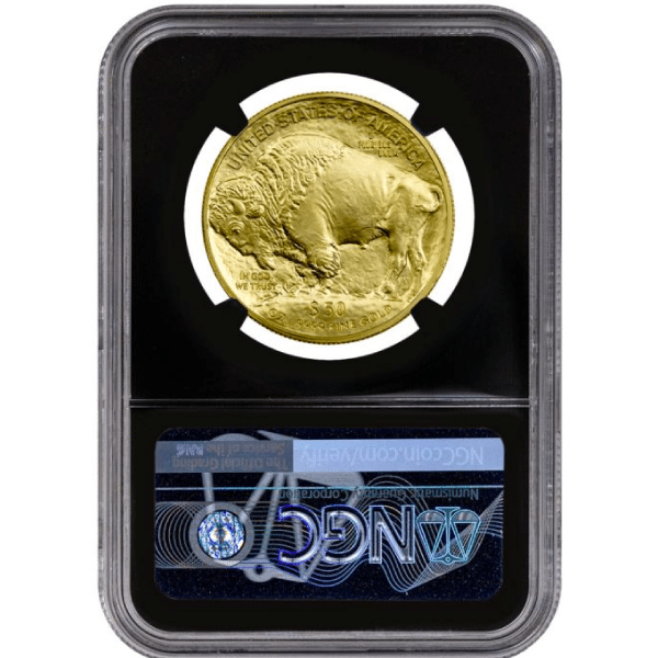 The American 1 oz Gold Buffalo MS70 First Day Issue Black Core, the U.S. Mint’s premier .9999 fine gold bullion coin, enjoys worldwide acclaim since its inception in 2006. Crafted to exacting standards, these coins hold a place of honor in numismatic circles.
