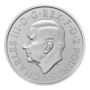 On the reverse, Britannia stands tall upon a rocky outcrop, brandishing a shield in her left hand and a trident in her right. A hologram near the trident’s base and micro-engraved text beside the shield contribute to its security. Inscriptions include “BRITANNIA,” the minting year, weight, and purity.
