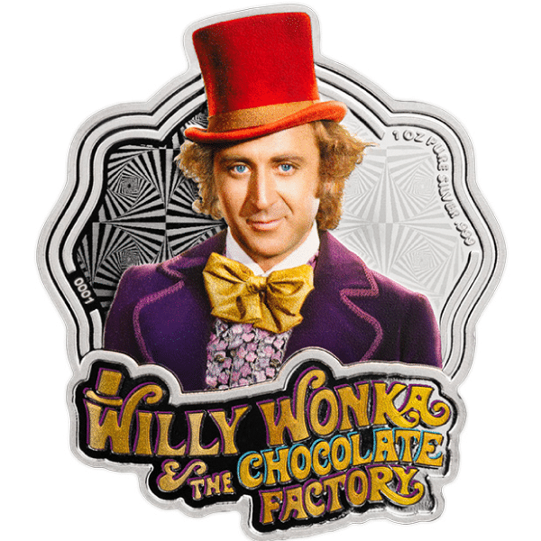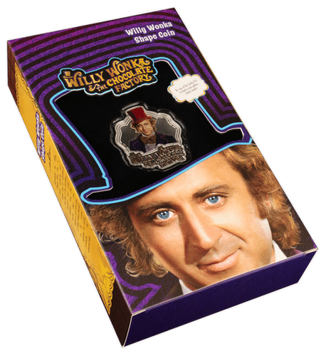 - Each coin is elegantly presented in a Willy Wonka-themed display box and includes a Certificate of Authenticity.