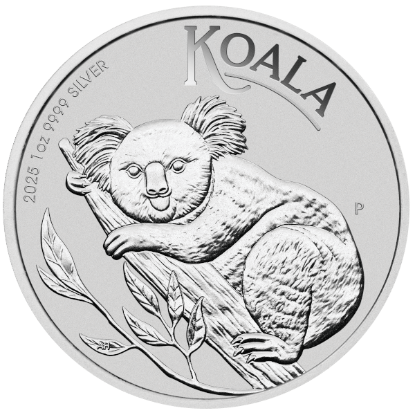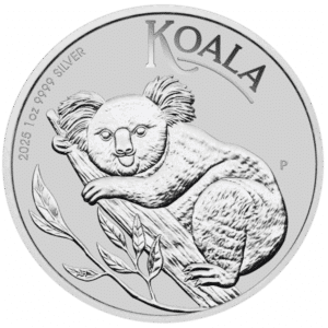 Struck by The Perth Mint from 1 troy ounce of .9999 fine silver, the 2025 Australian Silver Koala continues one of Australia’s most beloved bullion series. The reverse showcases a detailed new design of a koala resting on a eucalyptus branch, surrounded by inscriptions for “KOALA,” “2025,” weight, and purity, along with The Perth Mint’s “P” mintmark.