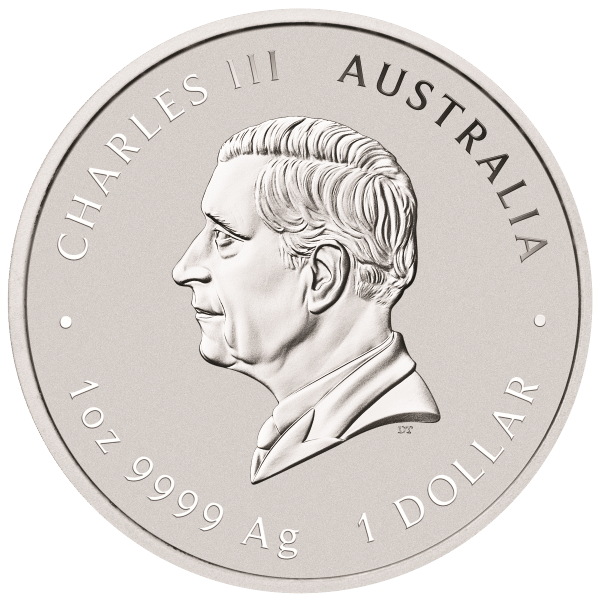 On the obverse, the coin showcases the left-profile bust of King Charles III, designed by Dan Thorne. Inscriptions surrounding the effigy include “CHARLES III,” “AUSTRALIA,” and the coin’s specifications, such as “1 oz 9999 Ag” and its face value of “1 DOLLAR,” ensuring authenticity and legal recognition.