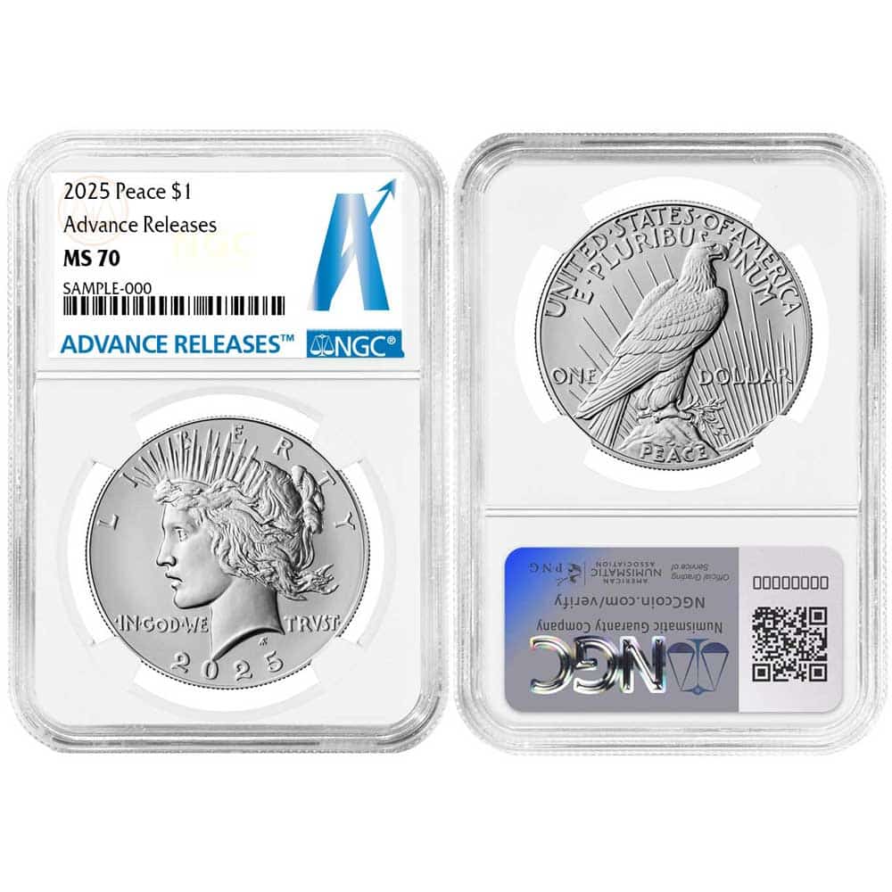Product Description: 2025 Morgan and Peace Silver Dollar Set NGC MS70 Advance Releases Label