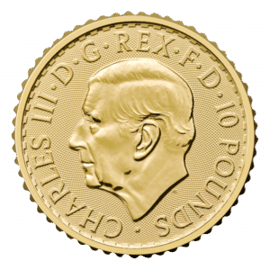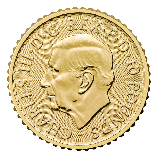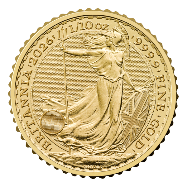 Introducing the 2026 1/10 ounce Gold Britannia, a fractional bullion coin from The Royal Mint that blends tradition, security, and accessibility. Struck in .9999 fine (24-karat) gold, this petit coin features the evocative Britannia design on the reverse and the official portrait of King Charles III on the obverse — providing both numismatic significance and sovereign assurance.