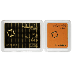 Produced By Valcambi Suisse, One Of The Most Respected Swiss Refineries, Each Gold CombiBar Is Sealed In Protective Packaging And Accompanied By A Certified Assay Card Verifying Its Authenticity, Weight, And Purity. Recognized Worldwide, The 50 Gram Gold CombiBar Combines Swiss Craftsmanship, Practical Utility, And Intrinsic Value — Making It A Smart Choice For Investors Seeking Both Portability And Flexibility In Their Gold Holdings.