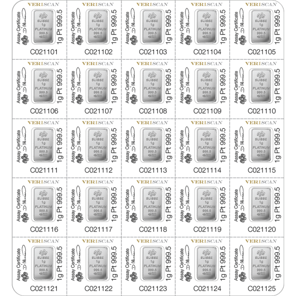 Whether you’re looking to enrich your investment portfolio or to mark a momentous occasion with a gift of enduring value, the 25 x 1g PAMP Fortuna Multigram Platinum Bar offers an unparalleled opportunity. Indulge in the brilliance of platinum, backed by PAMP’s legacy of excellence and authenticity. Purchase platinum bars today!